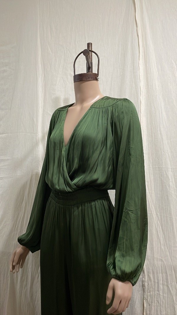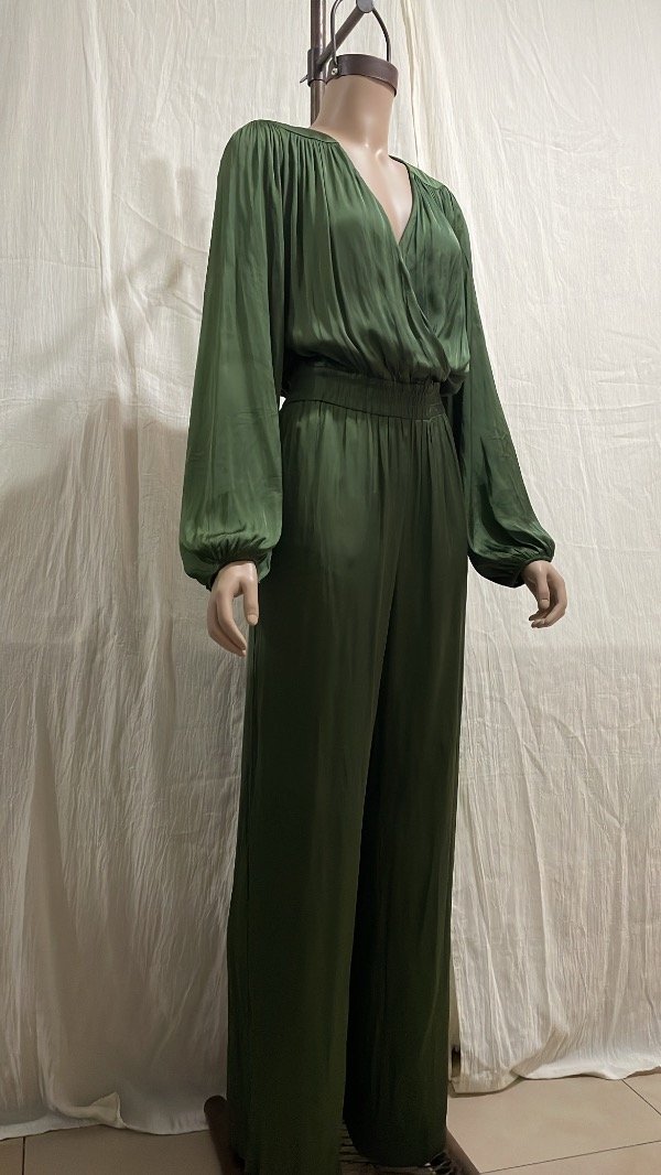 Hermoso Mono importado de marca Mango, confeccionado en seda, súper elegante y cómodo, posee bolsillos y elástico en la cintura. Hermoso.